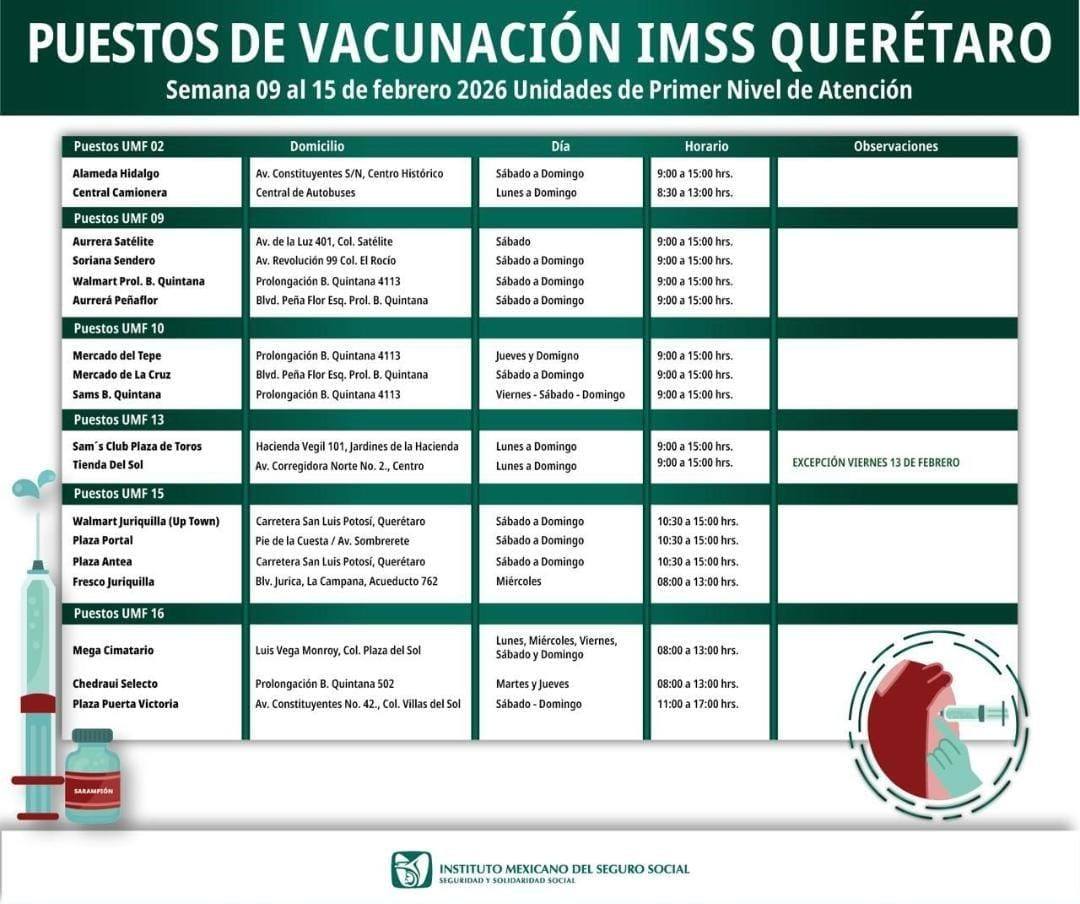 ¡ATENCIÓN QUERÉTARO! Estos son los puntos de vacunación que estarán del 9 al 15 de febrero