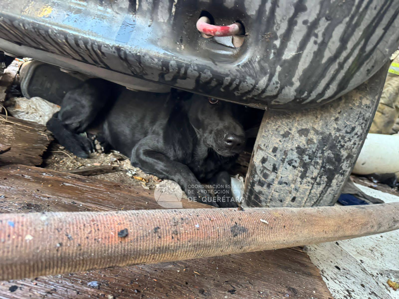 Entre humo y basura acumulada, rescatan a perro de incendio en Menchaca