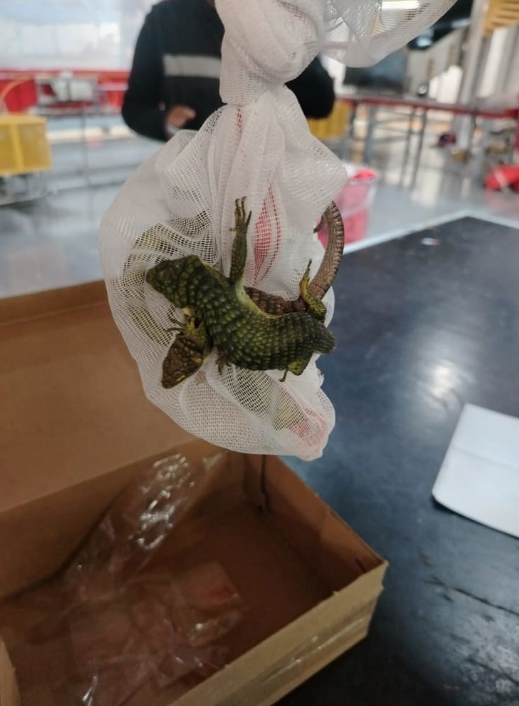 De acuerdo con información oficial, el hallazgo se realizó gracias al uso de equipos de rayos X y binomios caninos, los cuales identificaron irregularidades en cajas de cartón que simulaban contener mercancía ordinaria. Al realizar la inspección correspondiente, los agentes localizaron seis ejemplares de reptiles vivos, entre ellos caimanes y “dragoncitos azules” (Abronia graminea), una especie endémica de México que se encuentra bajo régimen de protección especial.