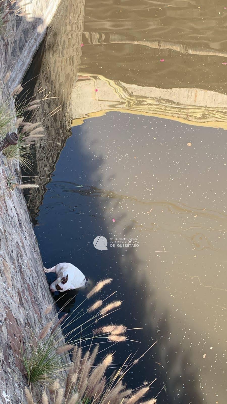 Rescatan a perrito que cayó al Río Querétaro; no presenta lesiones