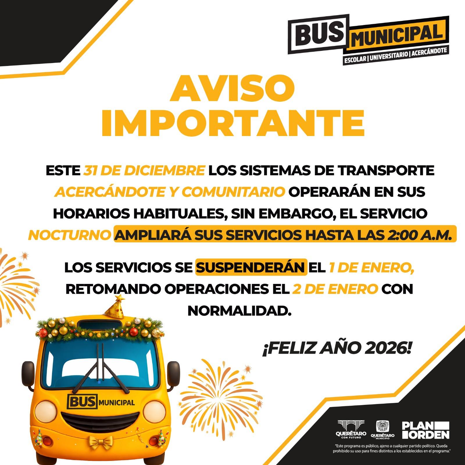 Transporte nocturno operará hasta las 2:00 am este 31 de diciembre en Querétaro
