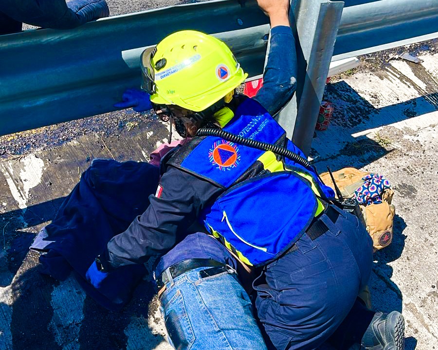 Al lugar acudieron elementos de Protección Civil Municipal, Bomberos de Querétaro, personal del CRUM y corporaciones de seguridad, quienes realizaron labores de mitigación de riesgos y brindaron atención prehospitalaria al conductor, quien posteriormente fue trasladado a un nosocomio para recibir atención médica especializada.